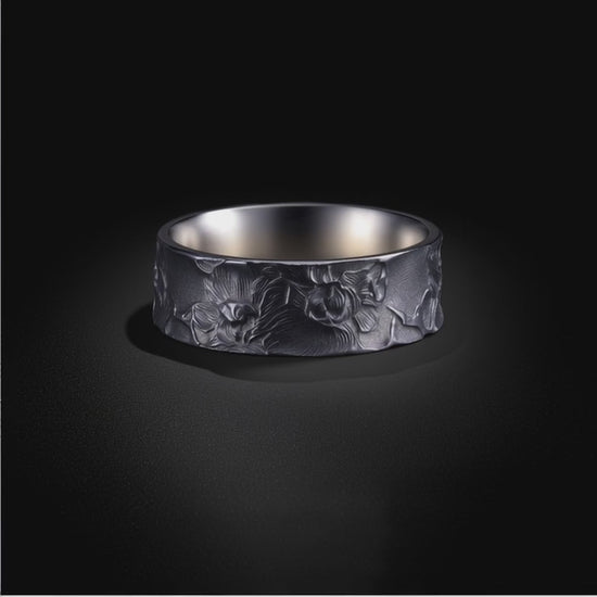 Midnight Flora Relief Band Silver Rings