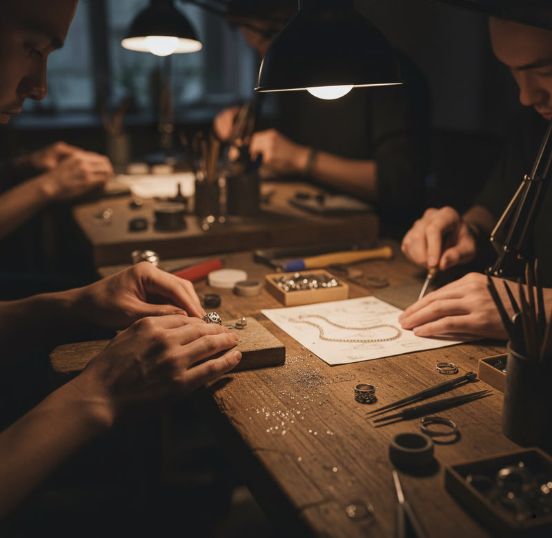Each piece is hand-made end-to-end and can be personalized to follow your idea. Sketches become prototypes then become keepsakes you reach for every day. Along the way we listen adjust refine until the piece feels like you.